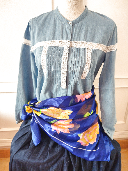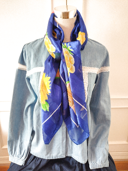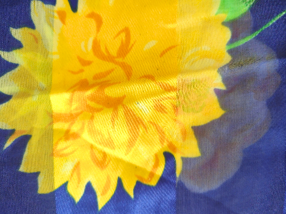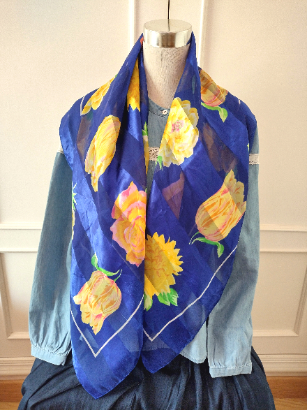 ユーズド商品・ フランスで買い付けたポップな配色のフラワー柄ヴィンテージスカーフ [スカーフ・フランス]