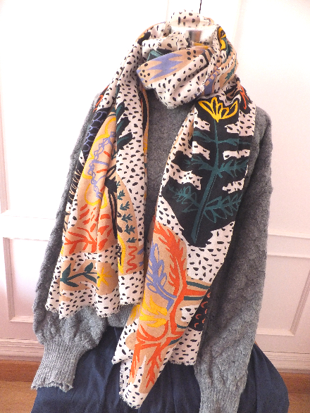 ユーズド商品・スペインBimba y Lolaのポップでハッピーな色柄が芸術的なストール [ストール・スペイン]